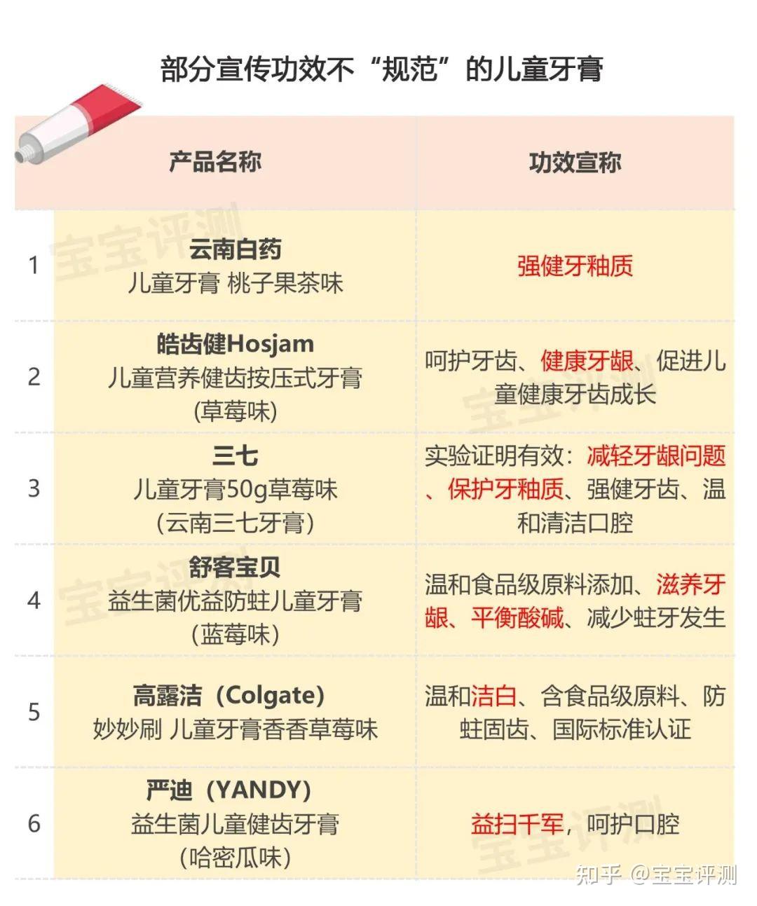 4、認準宣稱“基礎清潔類”和“防齲類”兩個成效的兒童牙膏,不要選擇其他成效宣稱的牙膏,比如云南白藥、三七、舒克寶貝、嚴迪這4款宣稱“維護牙釉質”、“減輕牙齦效果”、“運用益生菌“等成效。