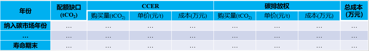 考慮合理利用國家核證自愿減排量(CCER)作為清繳配額,控制履約成本。逐年計算項目碳排放產生的費用或效益: